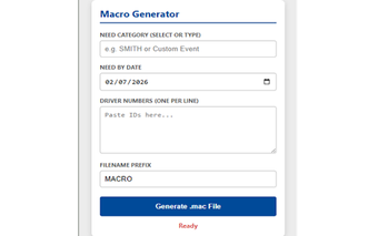 O AS400 Macro Generator é uma extensão para o navegador Chrome, projetada para profissionais de transporte e logística que utilizam terminais IBM i (AS400). Com essa ferramenta, é possível converter listas de motoristas em arquivos .mac de forma rápida e eficiente. A extensão permite a entrada de eventos de segurança de maneira simplificada, eliminando a necessidade de digitação manual para cada motorista, o que economiza tempo e reduz erros. Os usuários podem colar suas listas de IDs, selecionar um evento e definir uma data de 'Need By' com facilidade.
